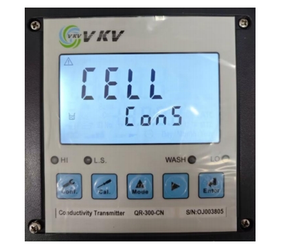 3. 通過▲ 或 ? 鍵來選擇模式,CELL 為電極系數(shù)設(shè)定模式,Std 為標(biāo)準(zhǔn)液校正模式。選擇 CELL 模式,按 Enter 鍵確認(rèn)進(jìn)入