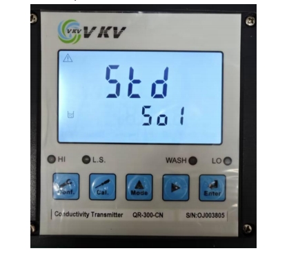 2.通過▲ 或 ? 鍵來選擇模式,CELL 為電極系數(shù)設(shè)定模式,Std 為標(biāo)準(zhǔn)液校正模式。選擇 Std 模式,按 Enter 鍵確認(rèn)進(jìn)入