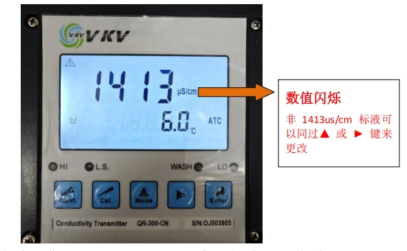 5.將電極放入 1413us/cm 標(biāo)液中,點(diǎn)擊Enter 鍵,開始校正。
